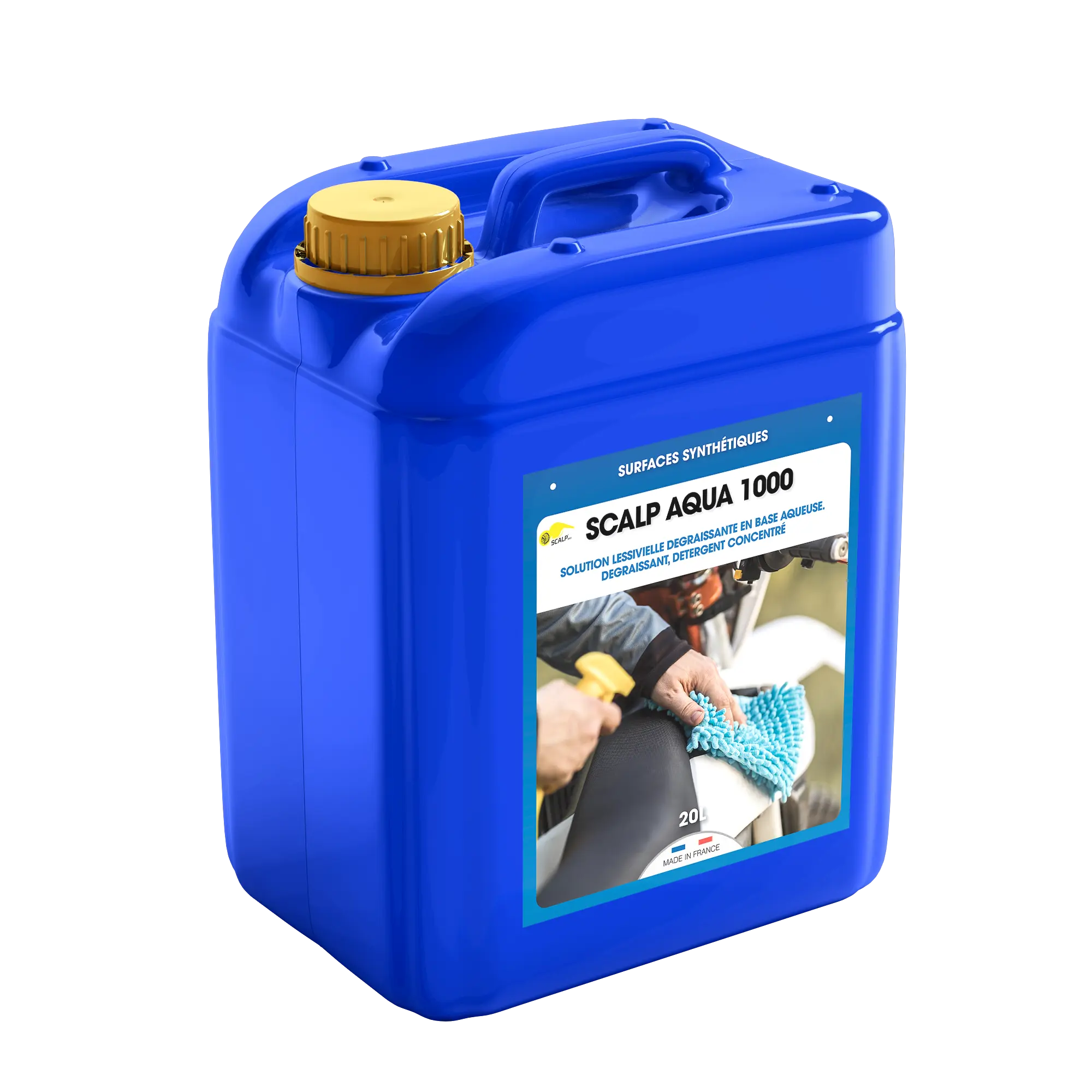 SCALP AQUA 1000 is a professional water-based degreaser and detergent designed for cleaning synthetic and mineral surfaces in the transport, building and industrial sectors. This concentrated product is particularly suited to the maintenance of facade cladding, PVC, aluminum, zinc, brass, galva, stainless steel and painted surfaces, as well as mineral materials such as tiles, porcelain stoneware and marble. It is also effective for industrial detergents, especially for mechanical parts and generator engines